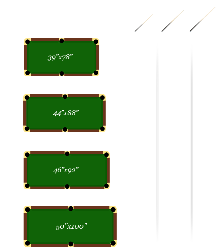 Enter the following measurements (in inches) to do a quick calculation of the minimum and optimal pool table room size.